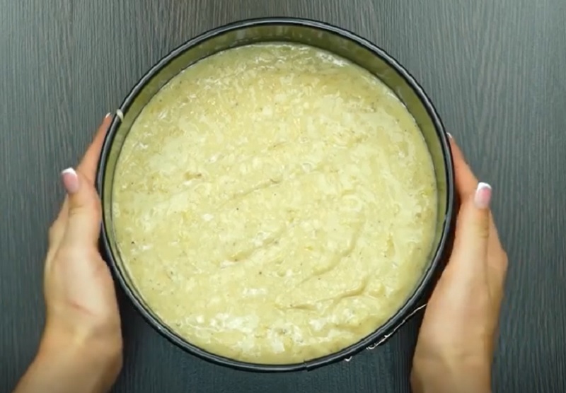3. Wysmaruj formę do pieczenia masłem, lekko posyp mąką, włóż ciasto do formy i piecz ciasto przez 30 minut w temperaturze 180 stopni.
