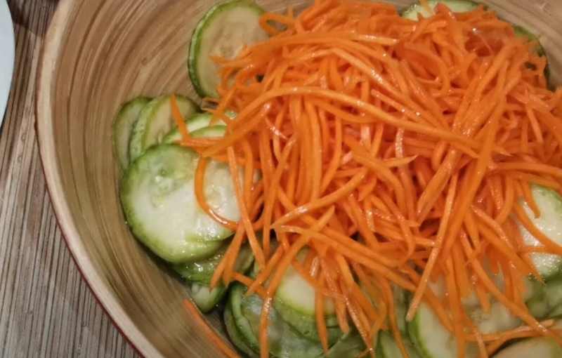 Umieść pokrojoną w plasterki warzywa w głębokiej misce i dodaj 1 łyżeczkę soli. Wszystko dobrze wymieszaj i odstaw na 30 minut.