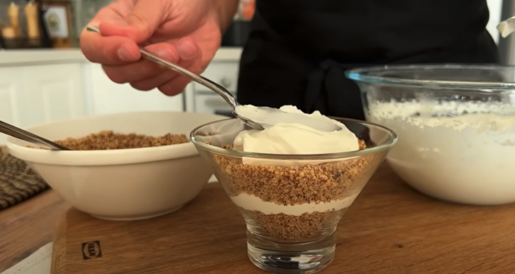 Na dno szklanek lub małych miseczek wyłóż warstwę migdałowej bazy. Nałóż warstwę kremu z serka śmietankowego. Powtórz warstwy, jeśli chcesz, aby deser był bardziej efektowny. Na wierzchu posyp posiekanymi migdałami. Wstaw deser do lodówki na 3-4 godziny, aby stężał. Rezultatem jest pyszny i łatwy w przygotowaniu deser keto. Smakuje wyśmienicie!