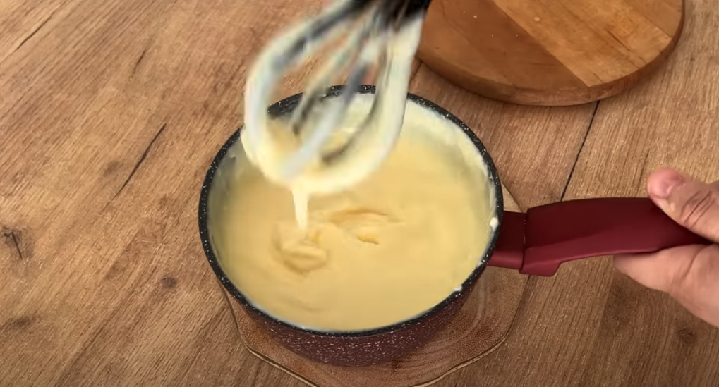 - Gdy mleko zacznie się podgrzewać, stopniowo dodawaj je do mieszanki jajecznej, ciągle mieszając.