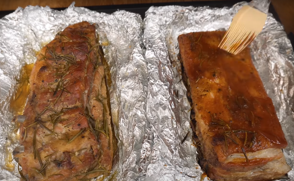 Po ugotowaniu mięso należy dokładnie umyć i osuszyć papierowymi ręcznikami. Blachę do pieczenia należy wyłożyć folią aluminiową.
