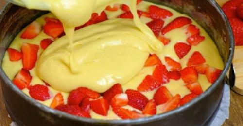 Każdy szuka tego przepisu: Ciasto truskawkowe, które rozpływa się w ustach – wystarczy wszystko wymieszać