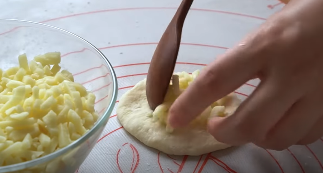 W ciepłym mleku rozpuść drożdże i cukier. Pozostaw na kilka minut, aż drożdże zaczną działać. Dodaj mąkę, sól i masło do mieszanki z drożdżami. Mieszaj, aż mąka będzie dobrze połączona z płynem. Ciasto będzie lepkie, ale to normalne. Przykryj miskę z ciastem czystą ściereczką i pozostaw w ciepłym miejscu do podwojenia objętości, co powinno zająć około 1 godziny. Po fermentacji, podziel ciasto na 16 równych części. Uformuj z każdej części małą kulkę. Umieść kawałek mozzarelli w środku każdej kulki, zamykając ciasto wokół sera.