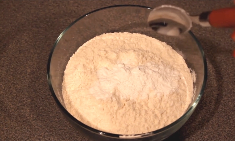 Rozgrzej piekarnik do 180 stopni. Wymieszaj mąkę, skrobię i proszek do pieczenia w większej misce