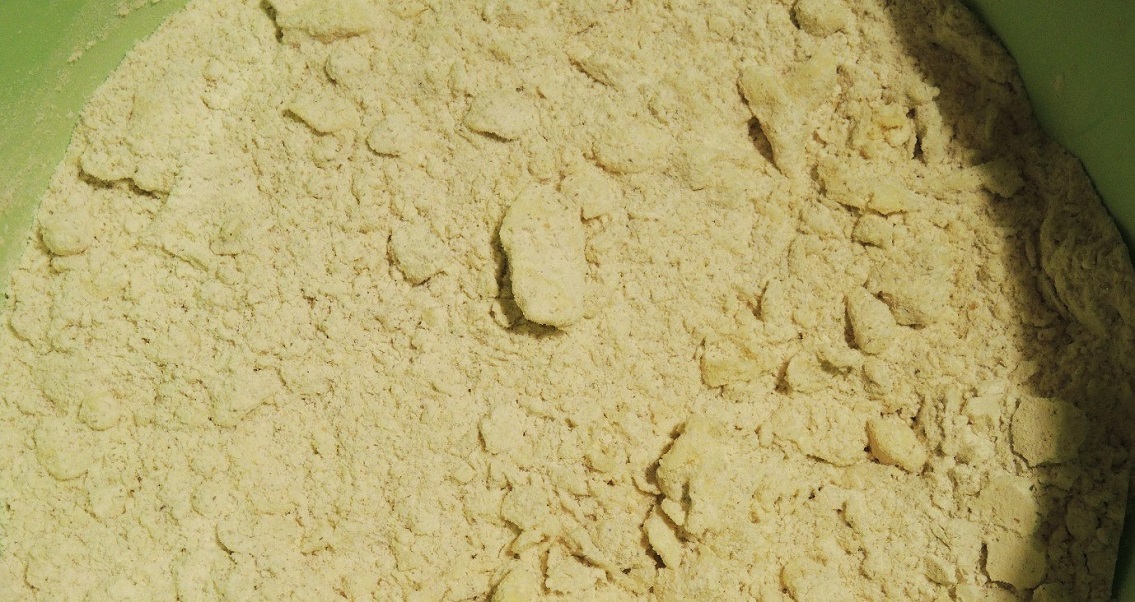 1. Przesiej 200 g mąki i połącz z proszkiem do pieczenia. Pokrój masło w małe kostki i wymieszaj z mąką i proszkiem.