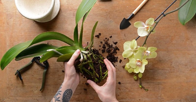 Potrzebny będzie Ci ostry nożyk lub sekator ogrodowy. Delikatnie wyjmij storczyka z doniczki. Otrząśnij go z próchna. Dokładnie sprawdź cały system korzeniowy.